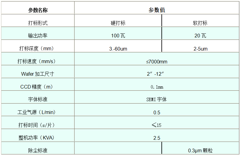 激光作用在晶圓上通過(guò)熱光源瞬時(shí)熱燒蝕并氣化或通過(guò)冷光源打斷材料分子鍵,在晶圓表面上留下相應(yīng)的字符、文字或圖案等信息,晶圓打標(biāo)具有自動(dòng)上下料,自動(dòng)定位,自動(dòng)打標(biāo)功能